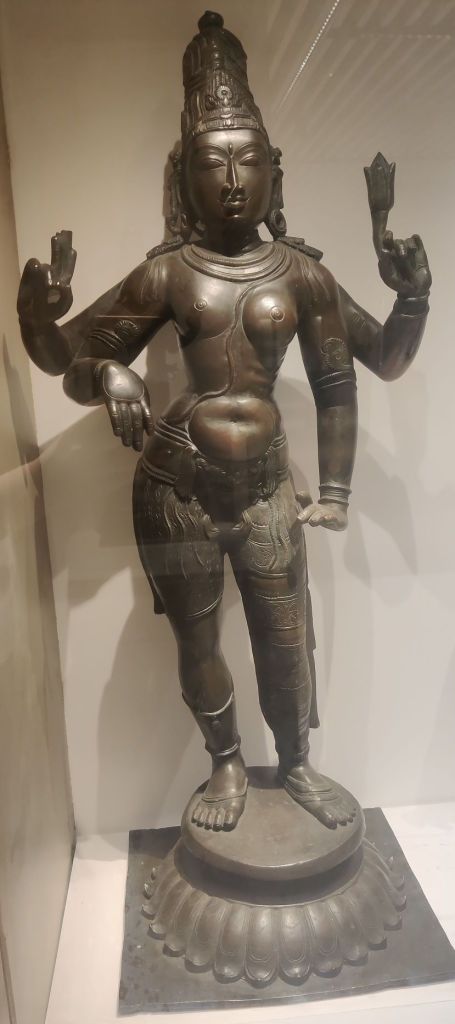 And one more statue before we go stampeding to the Decorative Arts galleries; that of a bronze Ardhanarishvara–a god form of Shiva and Parvati combined–from the 15th century.