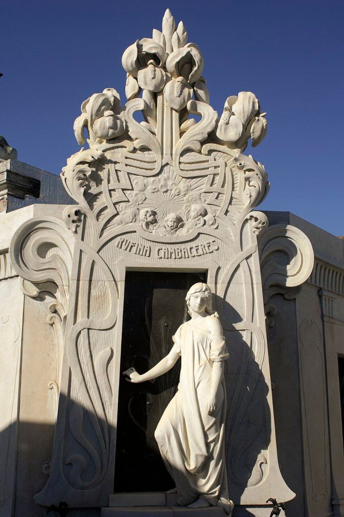 Liliana Crociati de Szaszak was killed in an avalanche in Europe while on honeymoon, aged 26. She’s depicted in her wedding dress outside her Neo-Gothic tomb.